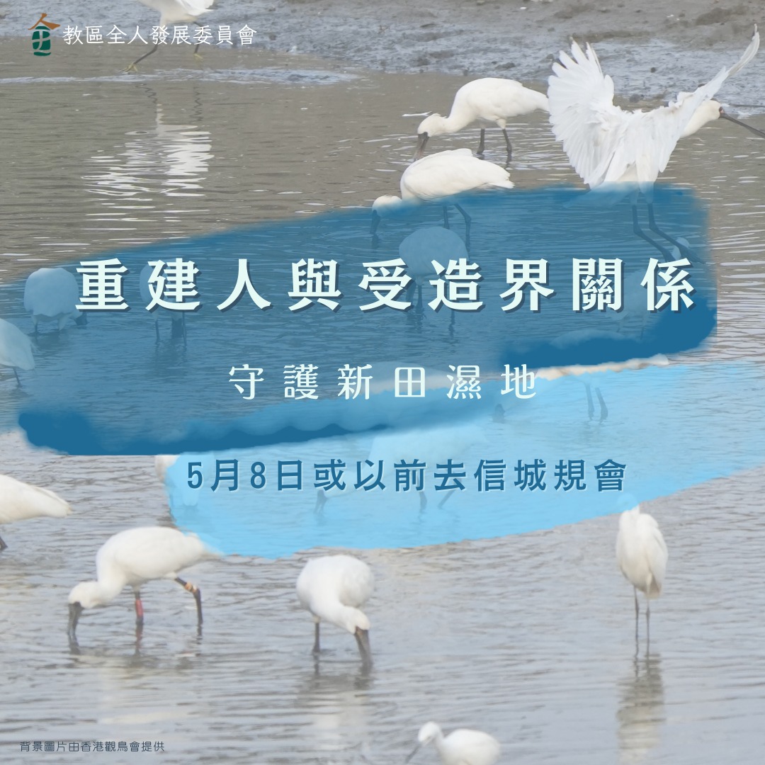 教區全人發展委員會轄下生態關懷小組以推動生態皈依重建人與受造界的關係,承擔管家的責任,建構與匱乏者和生態為伴的社會,邁向在主內的共融。