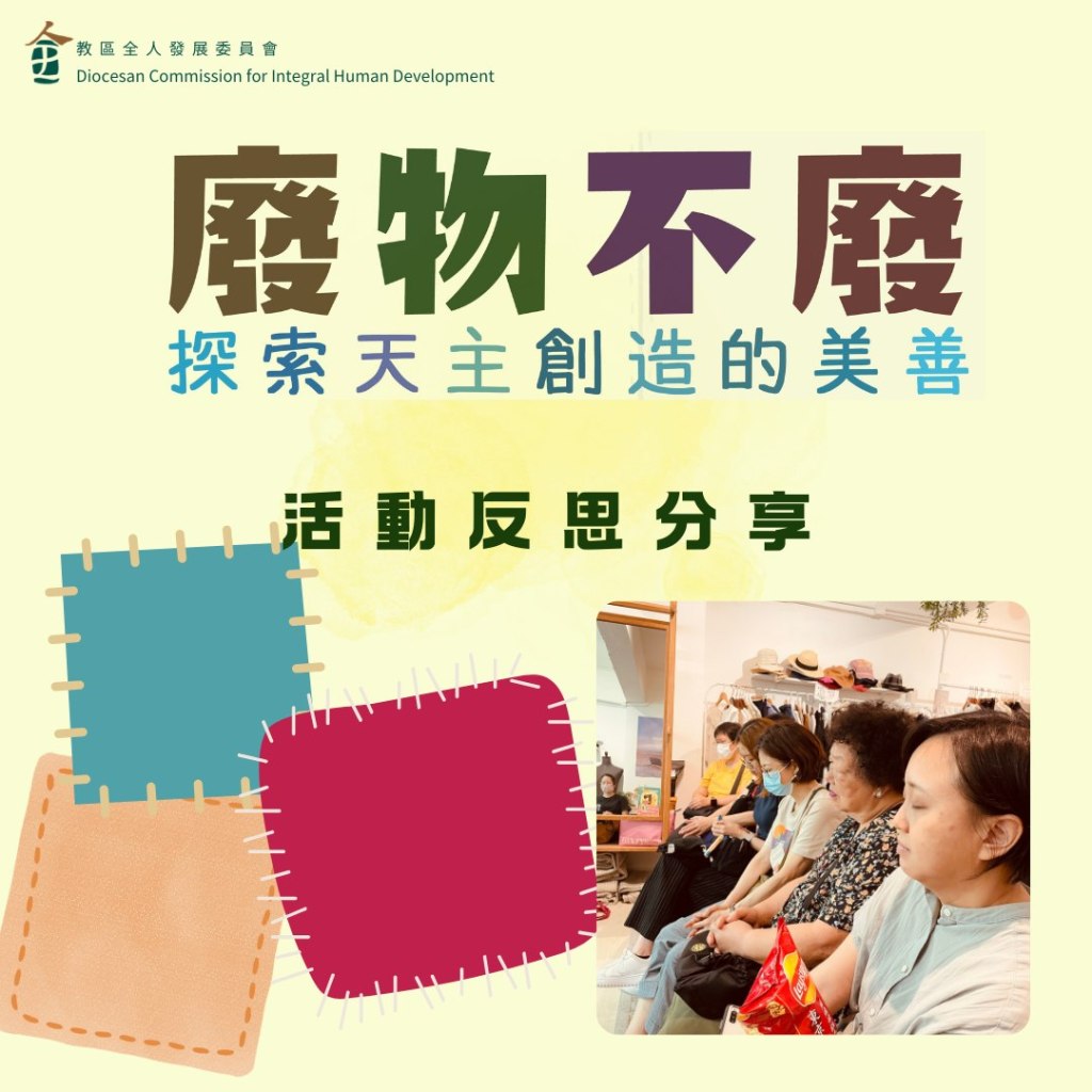 本會早前舉辦「廢物不廢 – 探索天主創造的美善」系列活動,透過紀錄片放映和靈修活動與參加者一同了解快速時裝的真正成本,又在「與舊衣對話」靈修活動之中看見舊衣的價值和可能。