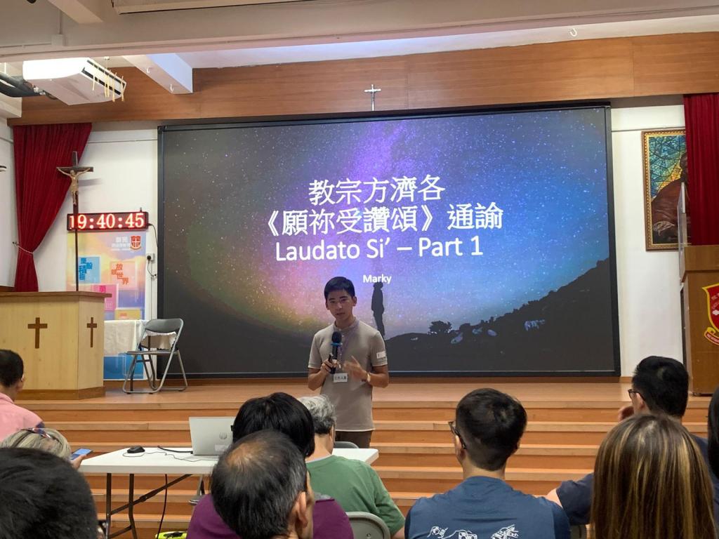 在7月18日,40位朋友聚首在油麻地天主教新民書院一同研讀讀《願祢受讚頌》「第二章:創造的喜訊」及「第六章:生態教育與生態靈修」的內容。