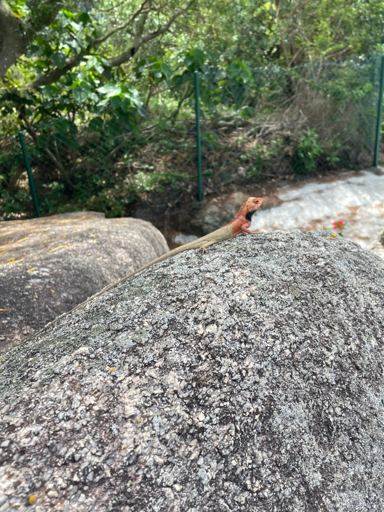 每一天我都更深入認識受造界的奧妙。從第一天開始,我們就有一個靈修小角落,重複去探訪和思索。我在那裡認識了一隻蜥蜴。我跟牠一起在石上曬太陽,牠有一個紅色的頭和咖啡色的身,如同牠身處的石頭一樣。我在路上走,看牠爬上樹,身體的顏色如同溫度計逐漸降溫變成灰綠色融入樹中。這就是神父講的Attunement(協調) 吧!萬物之間微妙的平衡是讓脆弱的大家可以互相連結,可以一同被救贖。